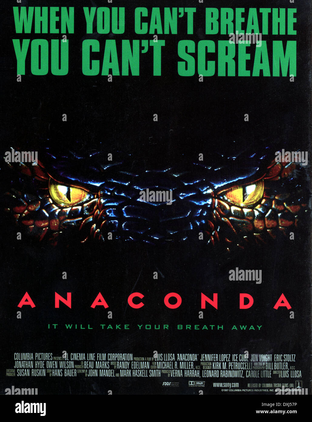 Anaconda 1997 Movie Poster - In real life, green anacondas are nocturnal animals and spend most of their lives in water.