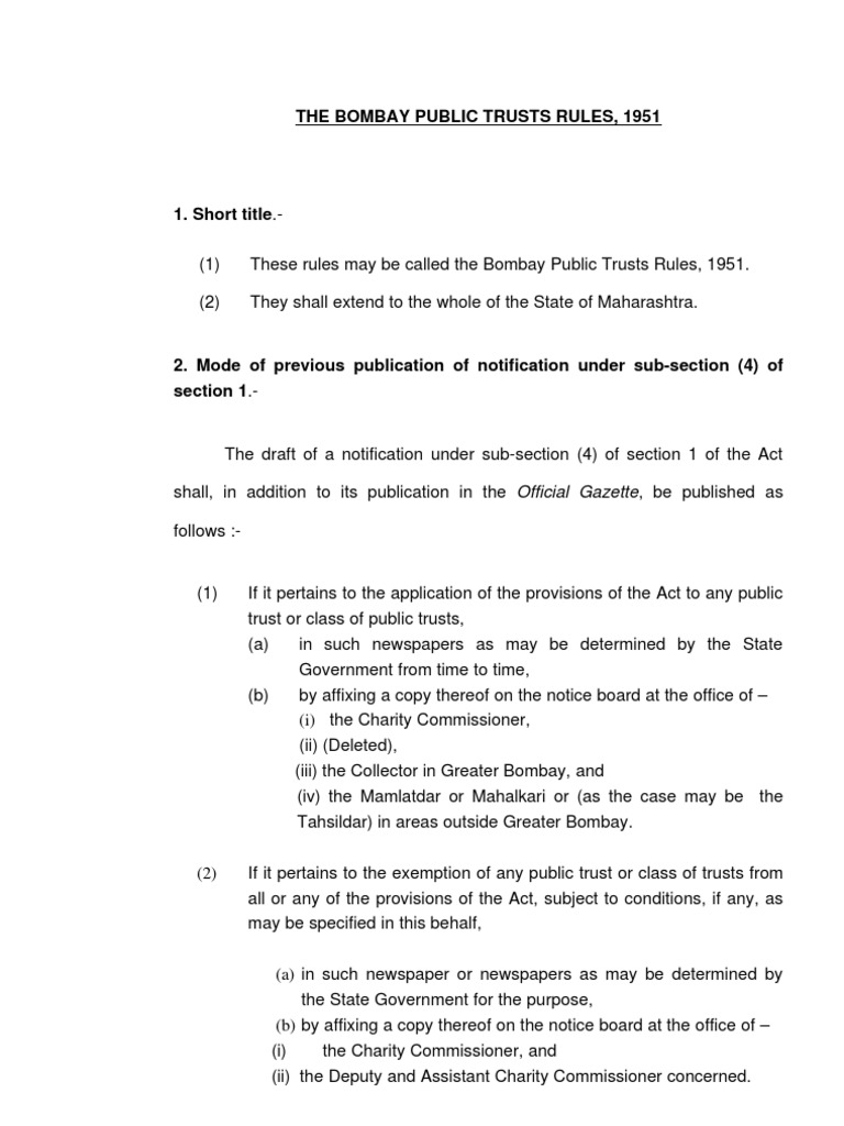 Bombay Public Trust Act Section 36 - Company secretaries bombay public trusts act, 1950.
