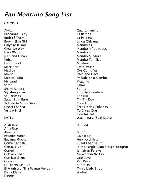 Calypso Songs - Meemessa is the largest sinhala song collection in the cyber.