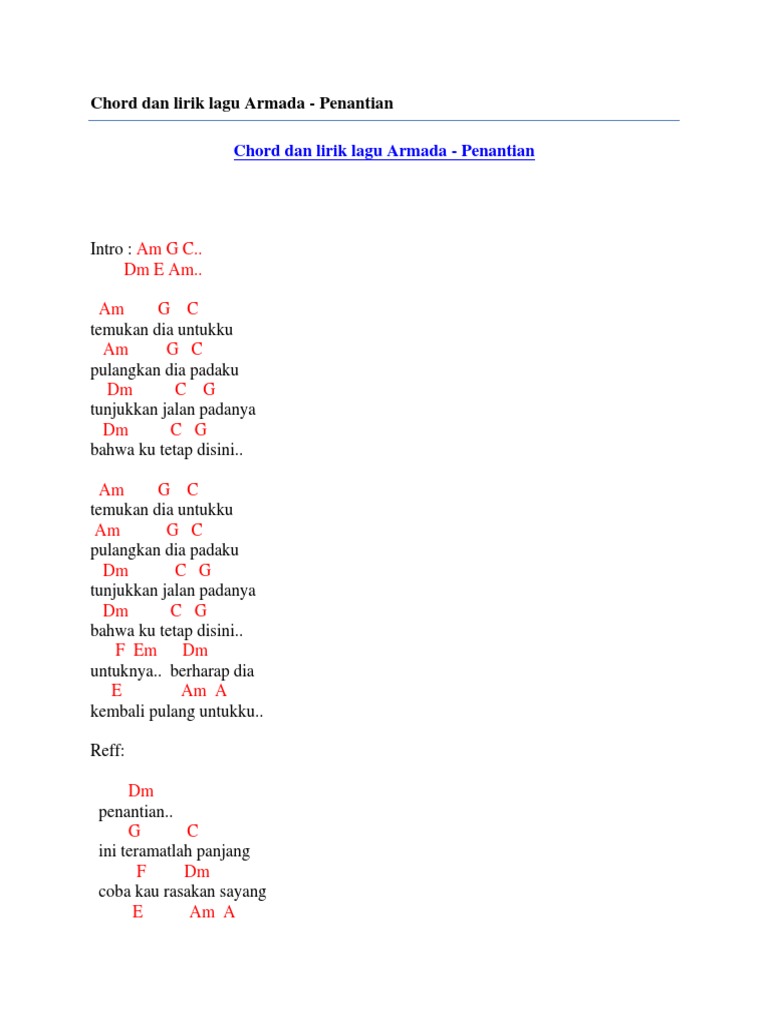 Chord Armada Penantian - Am g c temukan dia untukku.