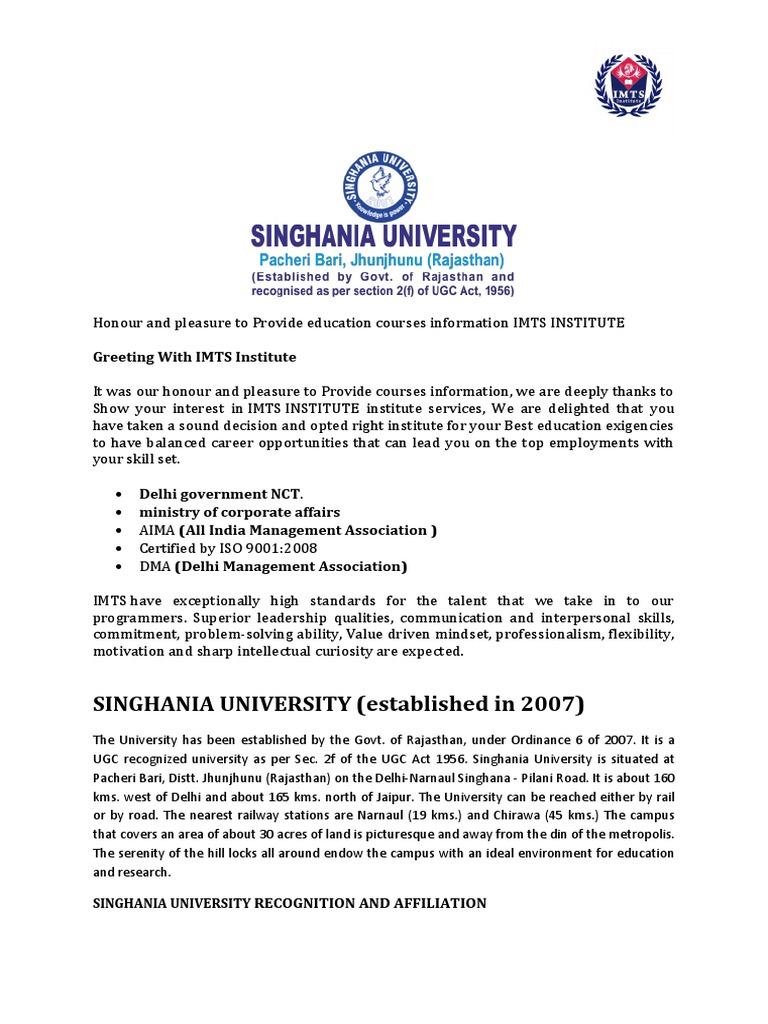 602x450 - Singhania university offers courses and programs leading to officially recognized higher education degrees in several areas of study.