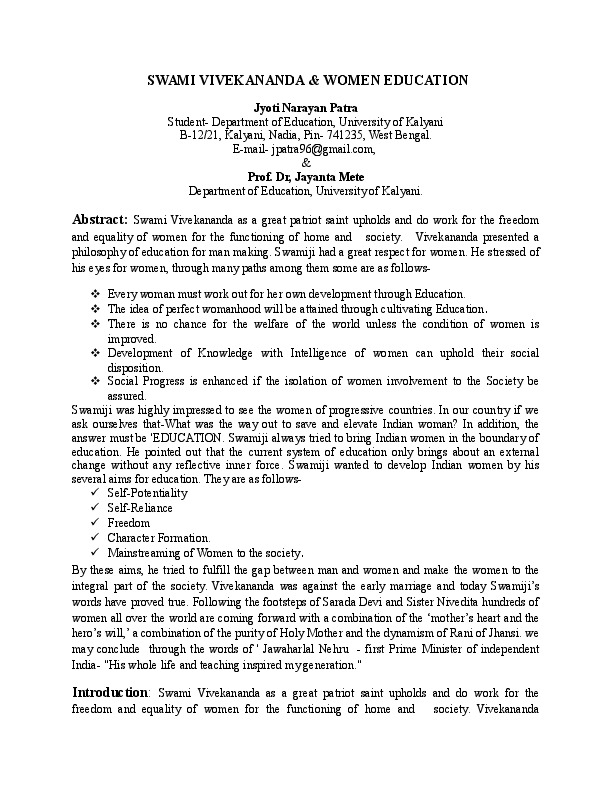 Doc Swami Vivekananda Women Education Jyoti Patra Academia Edu (1976), the ramakrishna math and mission, hinduism: